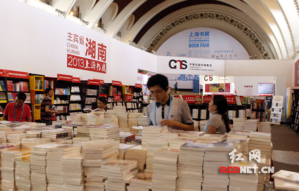 上海展覽中心,2013上海書展的湖南團展位布展工作基本結束。湖南受邀成為本屆書展主賓省,